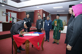 Pengangkatan dan Pengukuhan 1 orang Sekretaris Dinas, 4 orang Kepala Bidang, dan 15 orang Kepala Seksi/Kepala Sub Bagian pada Disduk Capil, disaksikan oleh Sekretaris Daerah Kota Tanjungpinang, Drs. Riono, M. Si, para Asisten, Staf Ahli, serta jajaran Organisasi Perangkat Daerah (OPD) Pemerintah Kota Tanjungpinang, di Aula Lantai III Kantor Walikota Tanjungpinang.